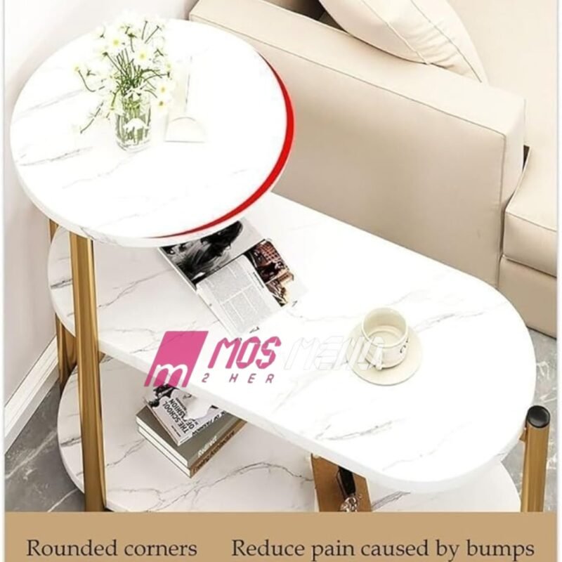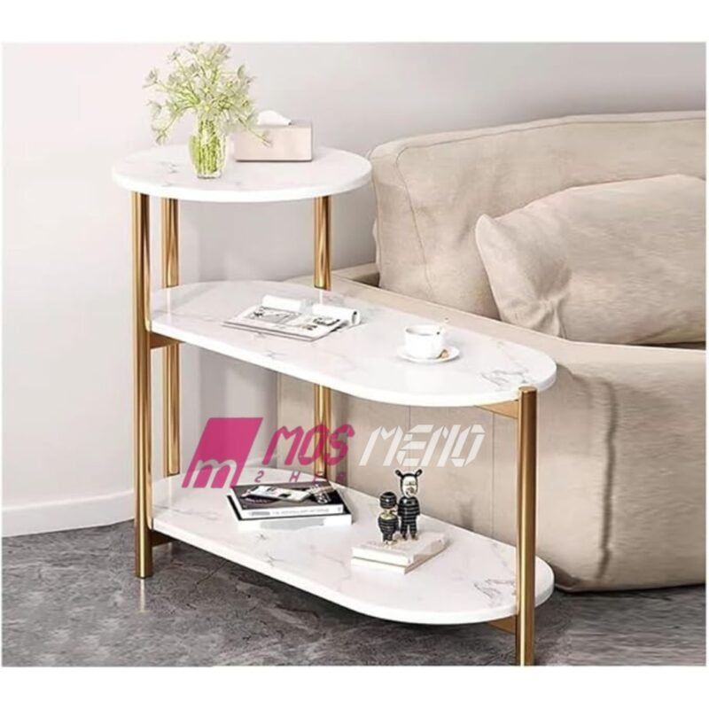 Tavolinë Anësore Luks me 3 Nivele – Dizajn Mermeri Bardhë & Ari