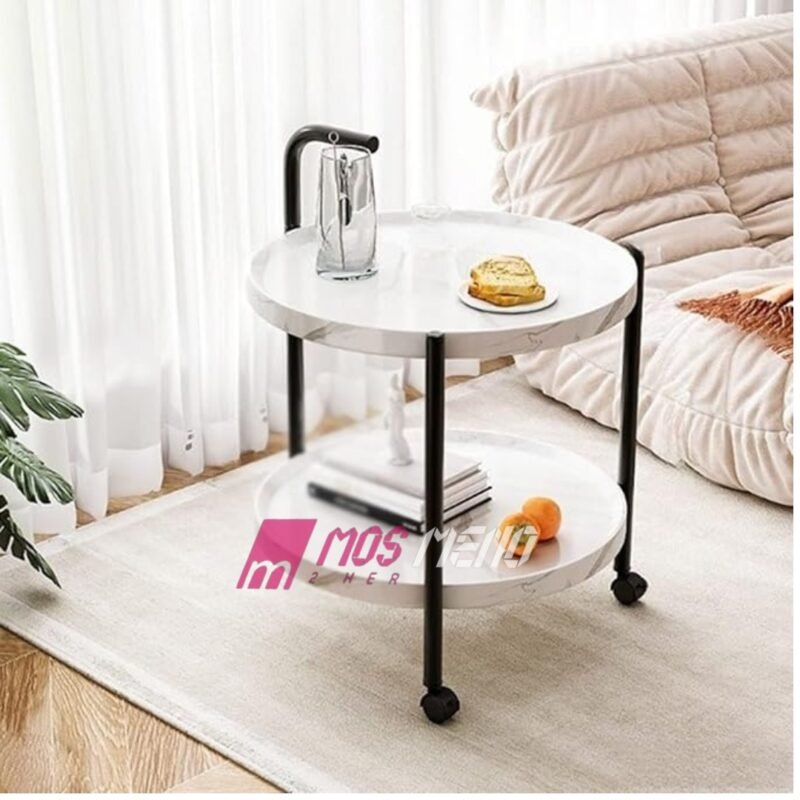 Karrocë Shërbyese Moderrne me Rrota – Pamje Mermeri Bardhë