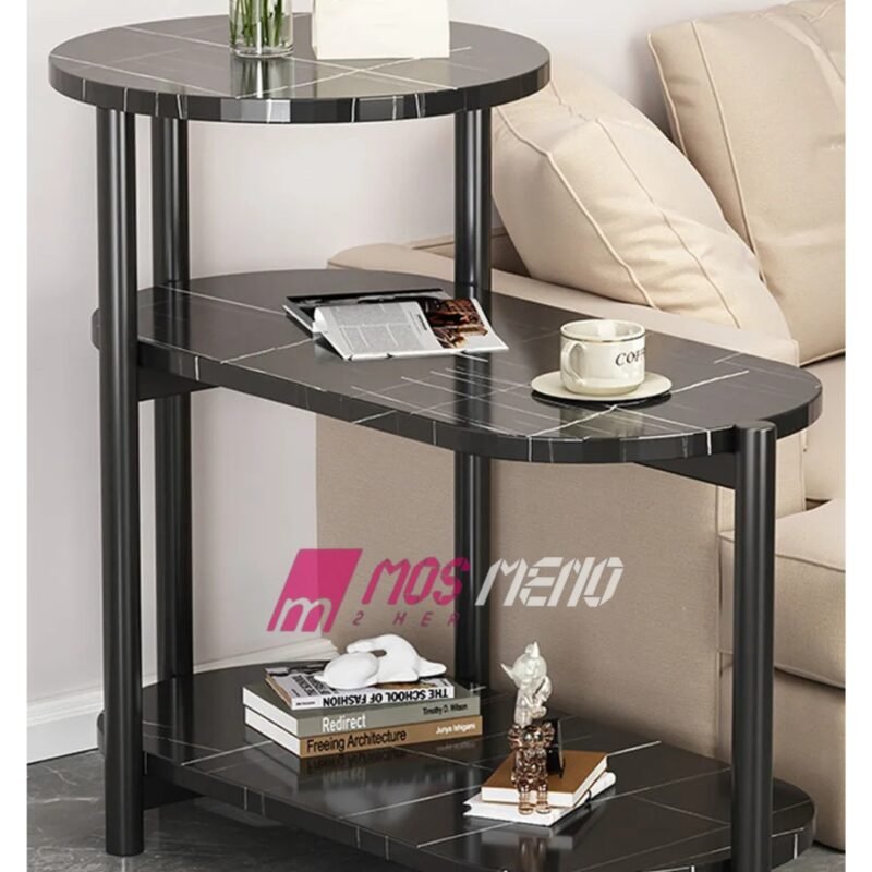 Tavolinë Anësore me 3 Nivele Dizajn Mermeri
