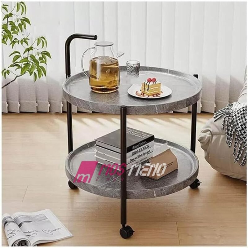Karrocë Shërbyese Rrethore me Rrota – Mermer Gri & Stil Modern