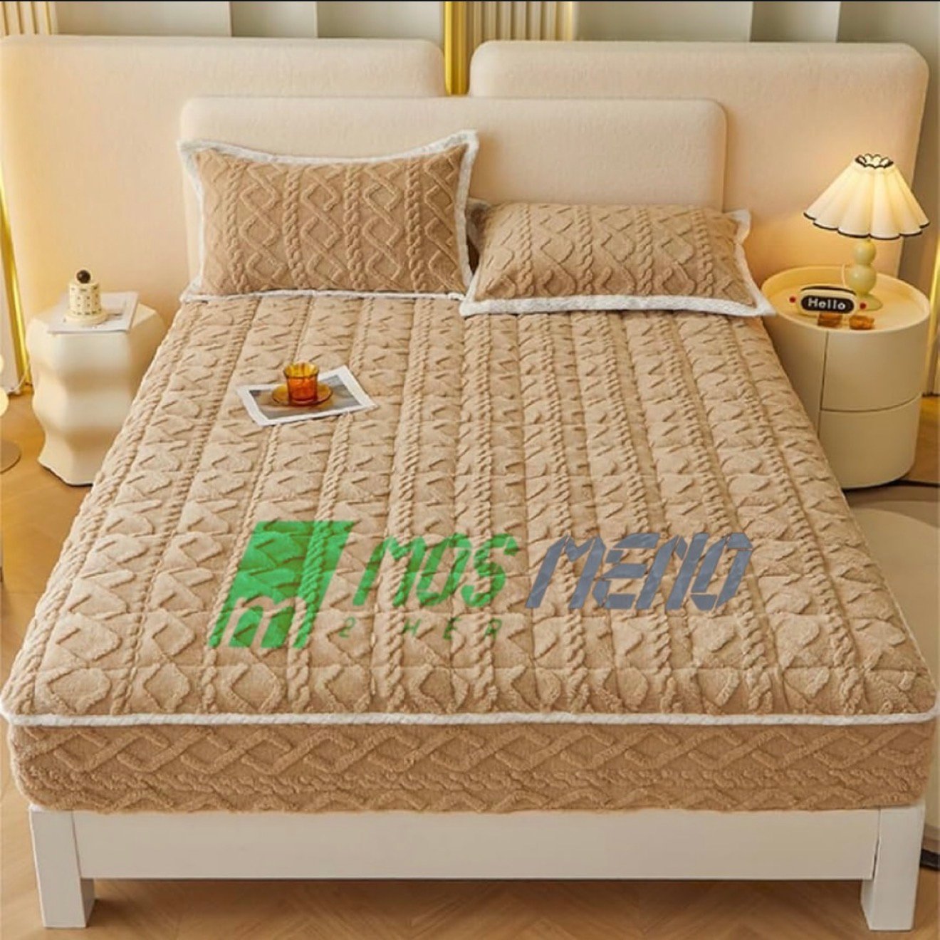 Kjo mbulesë luksoze është perfekte për dhoma moderne dhe të rehatshme. Materiali i trashë, i butë dhe me dizajn të gërshetuar i jep dhomës pamje premium.