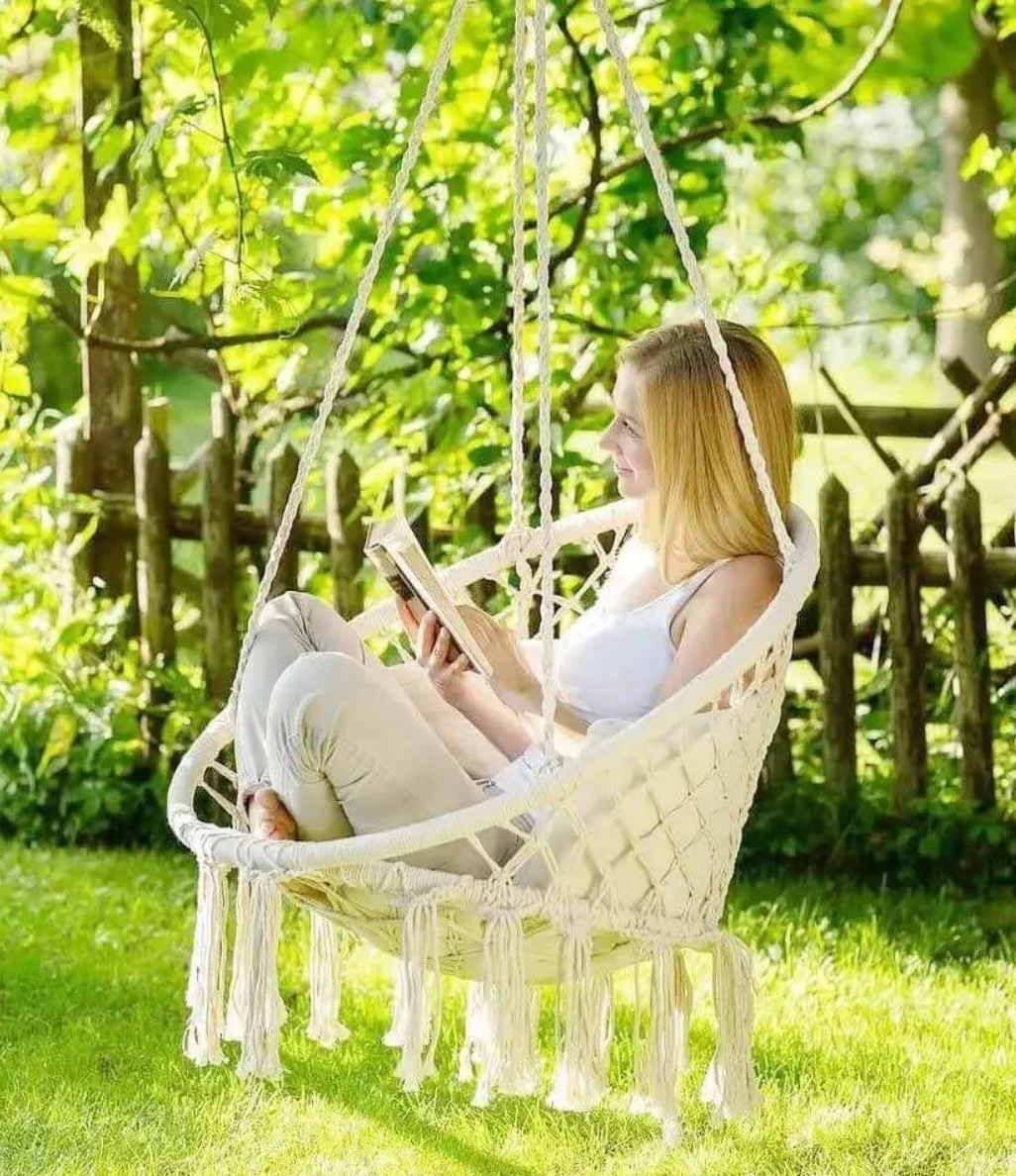 Kjo hulaj sjell një kombinim perfekt mes rehatisë dhe stilit boho, duke e bërë çdo hapësirë më të ngrohtë dhe relaksuese. E punuar me material të endur të qëndrueshëm, ajo ofron mbështetje të butë dhe komode për trupin, ndërsa dizajni elegant me lidhje dekorative i jep një pamje natyrale dhe estetike. Ideale për kopsht, tarracë, ballkon apo edhe ambiente të brendshme, kjo karrige është vendi ideal për t’u çlodhur, për të lexuar apo për të shijuar momente qetësie. E lehtë për t’u montuar dhe mjaft e sigurt, është zgjedhja perfekte për çdo kënd relaksues.