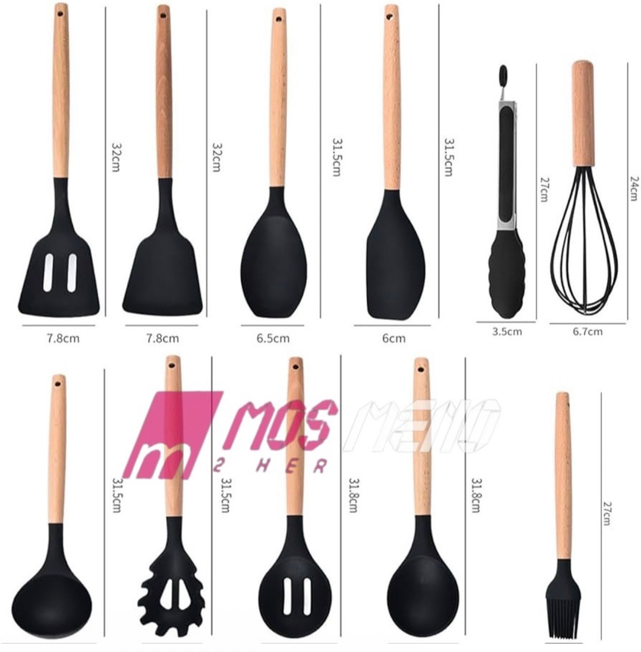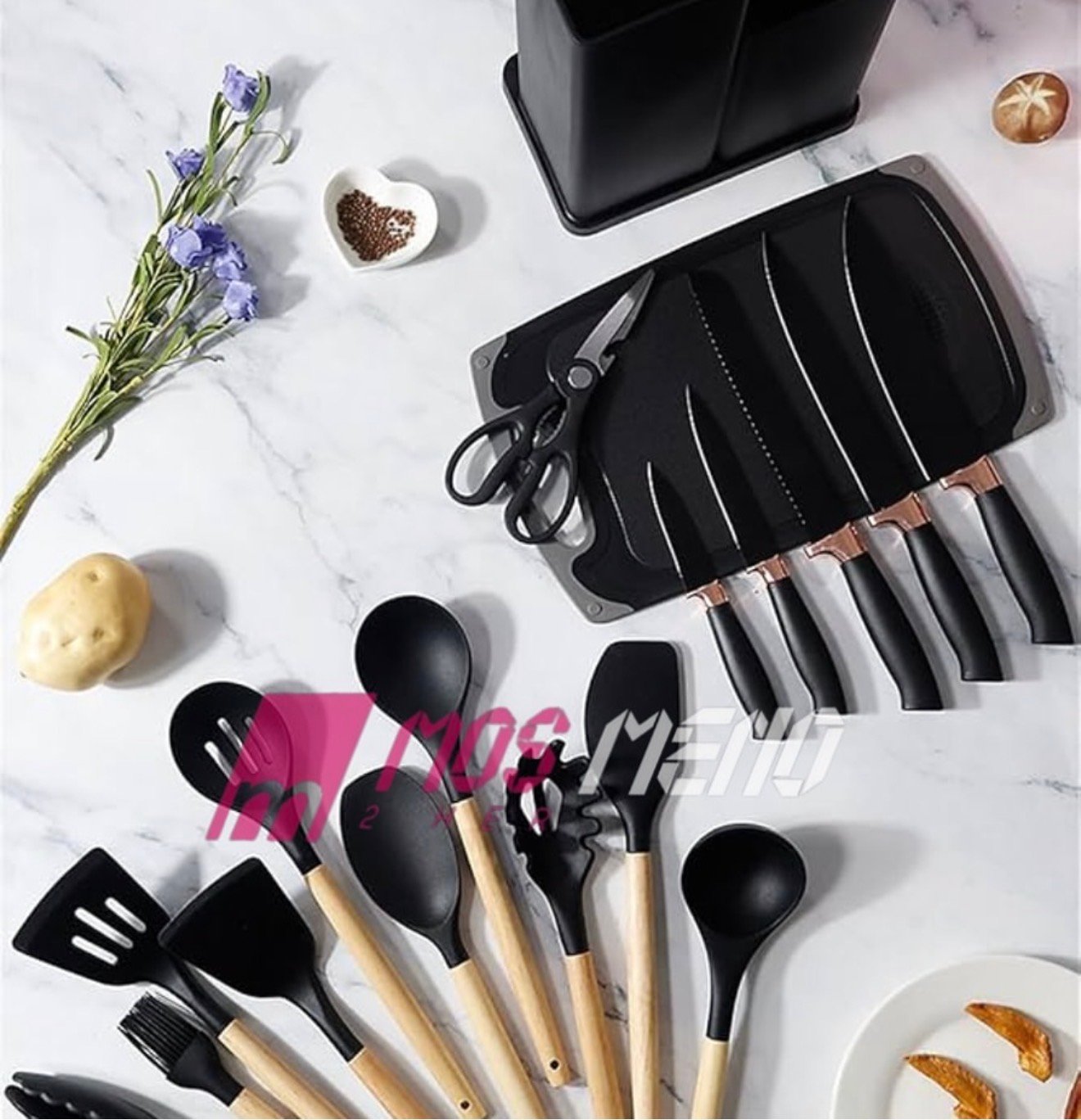 Set i plotë kuzhine – Përfshin shpatula, lugë, furçe, rrahese vezësh, kapëse dhe më shumë.