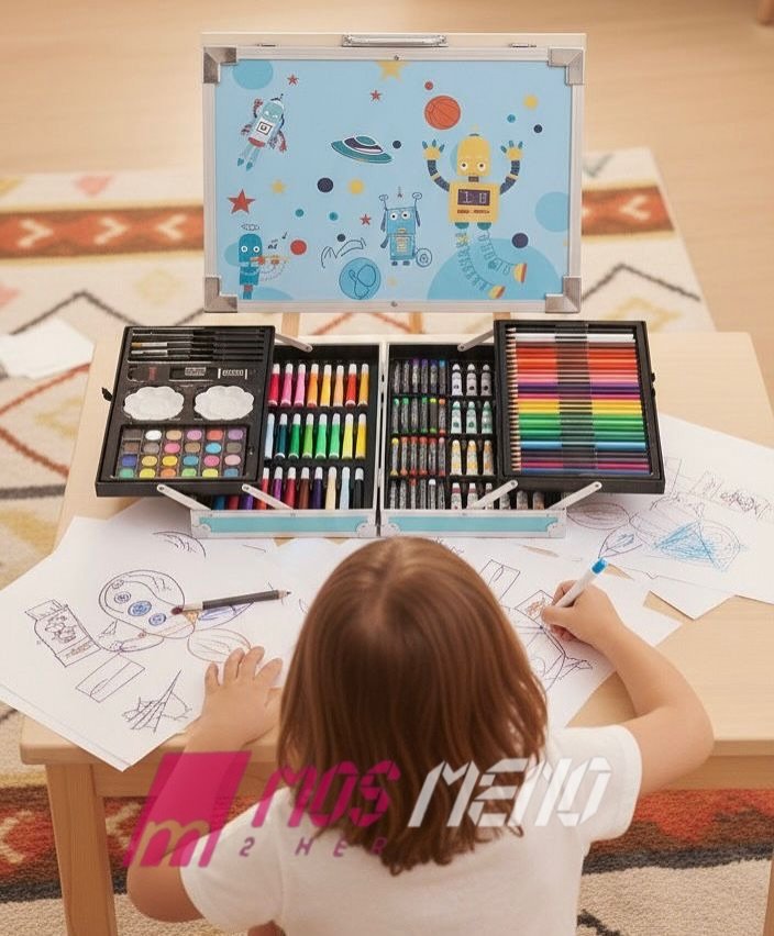 Përmban ngjyra, lapsa, brushë, bojëra dhe gjithçka që i duhet një artisti të vogël për të shprehur imagjinatën.